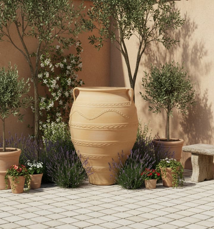 Φαιστός: Χειροποίητο παραδοσιακό κρητικό πιθάρι χρησιμοποιείται για αρχιτεκτονική κήπων