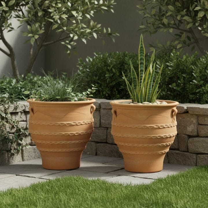 Μανώλια: Χειροποίητες γλάστρες παραδοσιακές από κρητικό πηλό, χρησιμοποιούνται ως γλάστρες για μεγάλα δέντρα